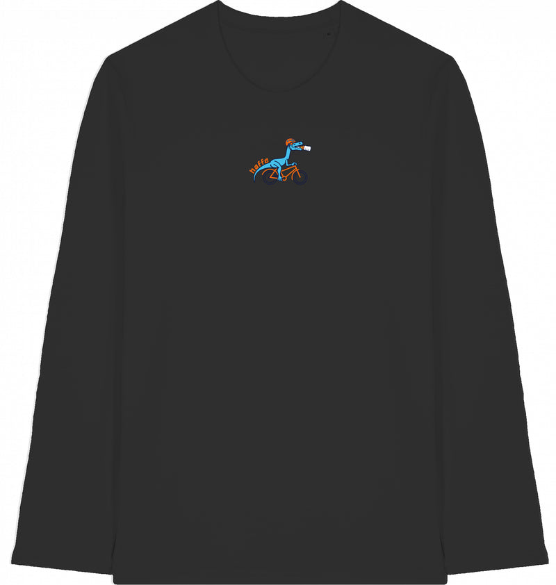Unisex-Langarmshirt | Set-In-Ärmel | 1x1 Rippstrick am Halskragen | Doppelnaht-Steppstich an Ärmelbündchen und Saum | Innenliegendes Nackenband aus Eigenstoff