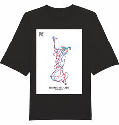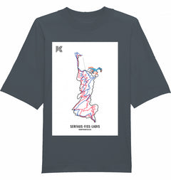 Mit ähnlichen Farben waschen, Aufdruck nicht bügeln, auf links waschen und bügeln. Trocknen: Nicht im Trommeltrockner trocknen Waschen: 30° Bügeln: 110°