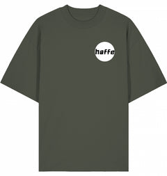 Das unisex übergroße T-Shirt mit hohem Kragen | Eingesetzte Ärmel | Überschnittene Schultern | 1x1 Rippstrick-Mockneck-Kragen | Nackenband innen am Rücken | Doppelnadelsteppstich an Ärmeln und Saum