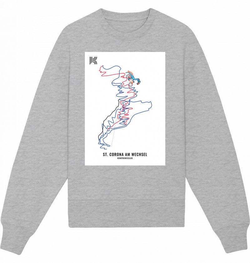 Ultralässiges Unisex-Sweatshirt mit Rundhalsausschnitt | Eingesetzte Ärmel | 2x2-Rippstrick an Halsausschnitt, Ärmelenden und am unteren Saum | Nackenband aus Single-Jersey | Abgesetzter Halbmond im Nacken | Doppelabsteppung an Ärmelansätzen, Ärmelenden und am unteren Saum